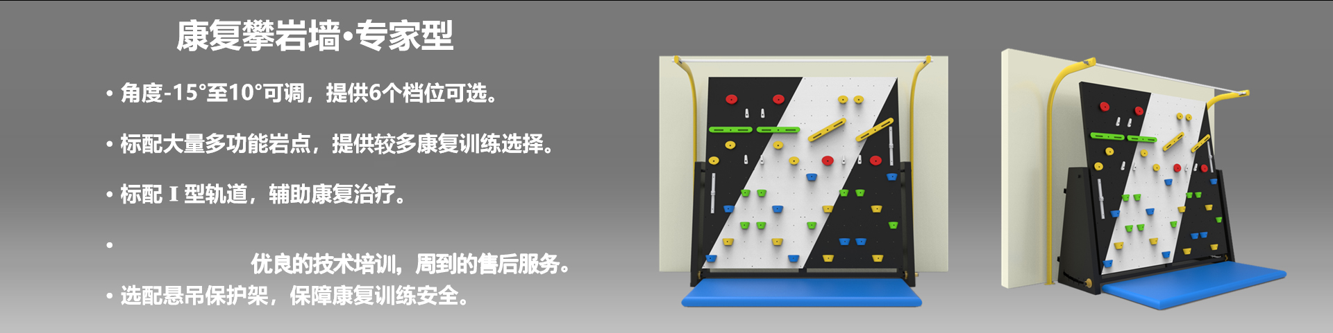 公司主要推广康复攀岩技术,针对骨科术后康复、运动损伤康复、儿童青少年姿态矫正、神经康复进行深入研究;并结合其实用性、安全性进行研发,推出完善的康复攀岩产品;引进国外的康复攀岩技术培训;力图将先进的运动医学技术,引入中国。 【详情】